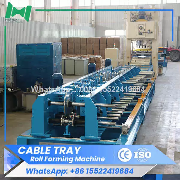 The HOPEX cable tray production line is designed for manufacturing perforated and solid cable trays used in electrical wiring management systems. This automated line includes a hydraulic punching press, roll forming machine, cutting unit, and control system to ensure continuous and precise operation. The punching station can create customized holes and slots, while the forming section guarantees smooth bending and accurate tray dimensions. Built with durable components and an advanced PLC control system, this production line offers high speed, low noise, and easy operation. It is ideal for producing trough-type or ladder-type cable trays widely used in construction, power plants, and industrial facilities. HOPEX provides complete solutions, including design customization and installation support, helping customers achieve efficient and reliable cable tray manufacturing.